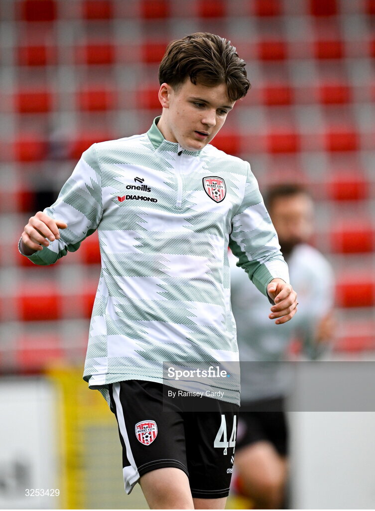 5 October 2025; Ciaran Mullan of Derry City before the SSE Airtricity Men's Premier Division match between Derry City and Sligo Rovers at The Ryan McBride Brandywell Stadium in Derry. Photo by Ramsey Cardy/Sportsfile