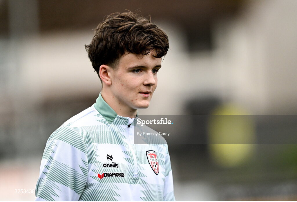 5 October 2025; Ciaran Mullan of Derry City before the SSE Airtricity Men's Premier Division match between Derry City and Sligo Rovers at The Ryan McBride Brandywell Stadium in Derry. Photo by Ramsey Cardy/Sportsfile