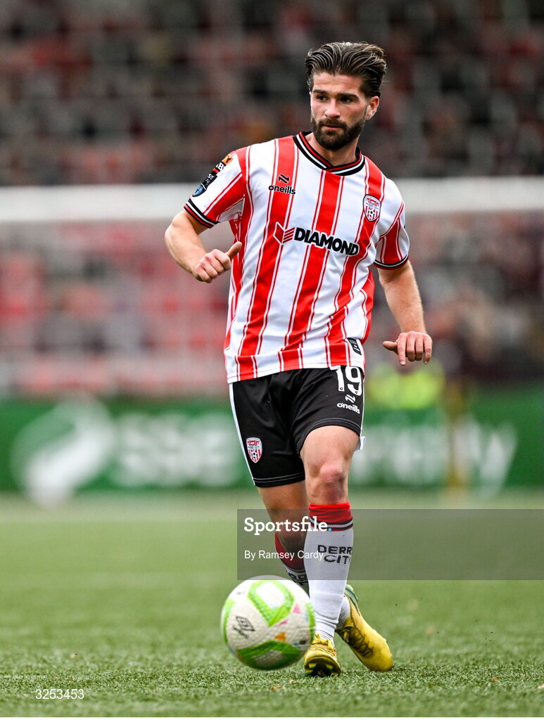 5 October 2025; Brandon Fleming of Derry City during the SSE Airtricity Men's Premier Division match between Derry City and Sligo Rovers at The Ryan McBride Brandywell Stadium in Derry. Photo by Ramsey Cardy/Sportsfile