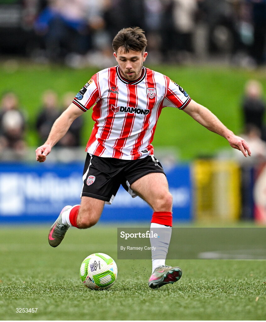 5 October 2025; Adam O'Reilly of Derry City during the SSE Airtricity Men's Premier Division match between Derry City and Sligo Rovers at The Ryan McBride Brandywell Stadium in Derry. Photo by Ramsey Cardy/Sportsfile