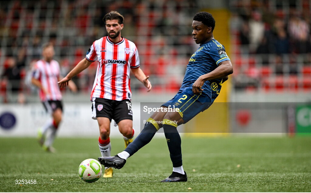 5 October 2025; Edwin Agbaje of Sligo Rovers during the SSE Airtricity Men's Premier Division match between Derry City and Sligo Rovers at The Ryan McBride Brandywell Stadium in Derry. Photo by Ramsey Cardy/Sportsfile