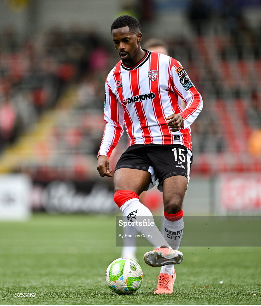 5 October 2025; Sadou Diallo of Derry City during the SSE Airtricity Men's Premier Division match between Derry City and Sligo Rovers at The Ryan McBride Brandywell Stadium in Derry. Photo by Ramsey Cardy/Sportsfile