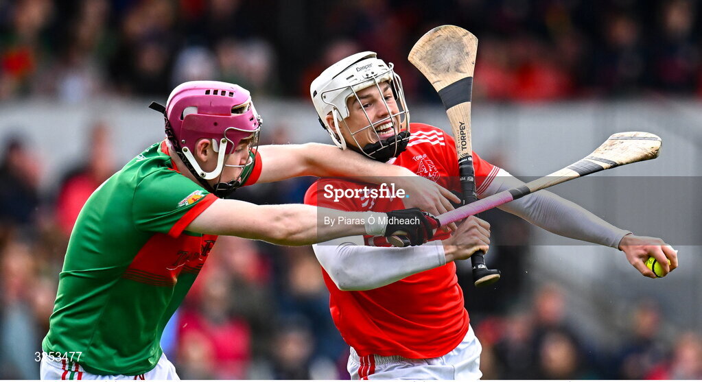 5 October 2025; Marco Cleary of Éire Óg Ennis in action against John Cahill of Clooney Quin during the Clare County Senior Club Hurling Championship final match between Clooney Quin and Éire Óg Ennis at Zimmer Biomet Páirc Chíosóg in Ennis, Clare. Photo by Piaras Ó Mídheach/Sportsfile