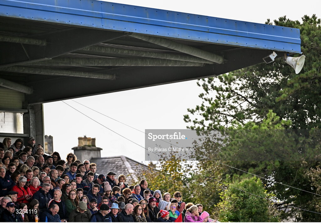 5 October 2025; Supporters before the Clare County Senior Club Hurling Championship final match between Clooney Quin and Éire Óg Ennis at Zimmer Biomet Páirc Chíosóg in Ennis, Clare. Photo by Piaras Ó Mídheach/Sportsfile