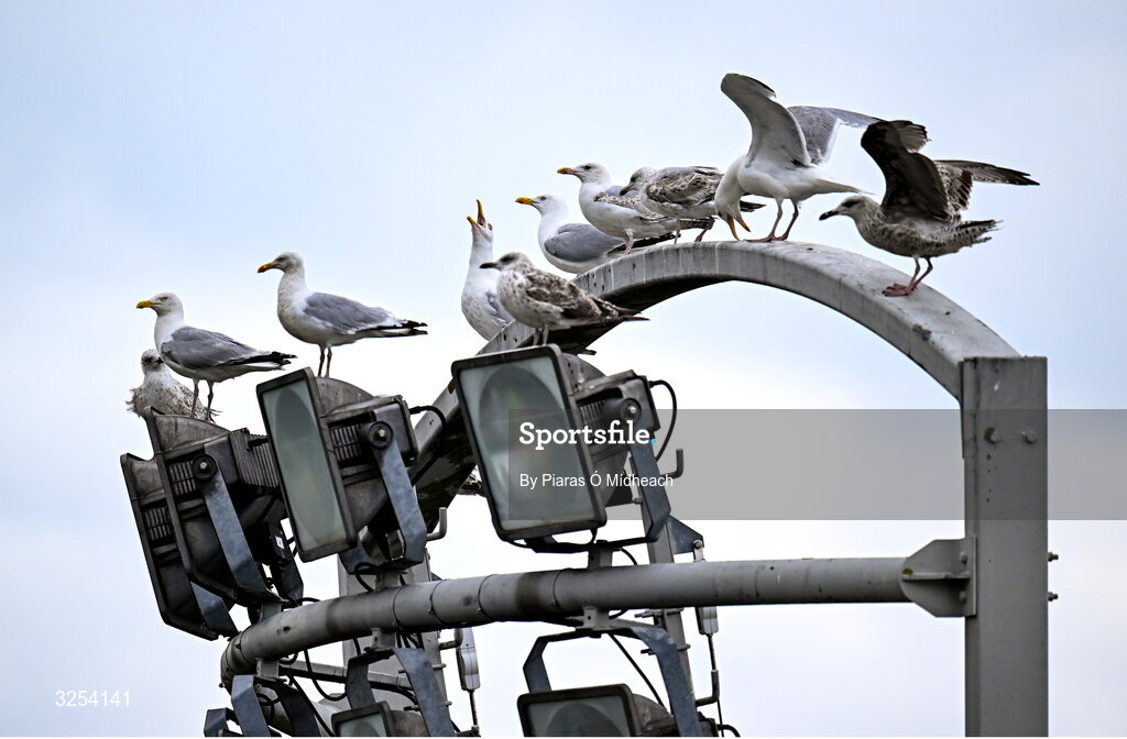 27 July 2025; Seagulls gathers on top of a floodlight on Hill 16 after the GAA Football All-Ireland Senior Championship final match between Kerry and Donegal at Croke Park in Dublin. Photo by Piaras Ó Mídheach/Sportsfile