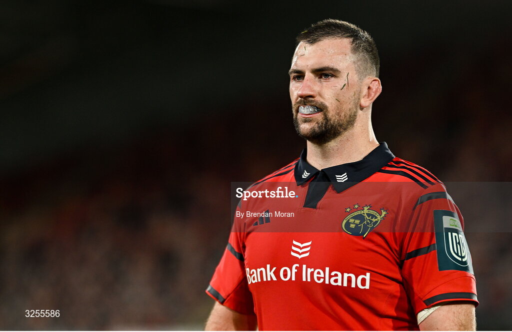 4 October 2025; Diarmuid Barron of Munster after the United Rugby Championship match between Munster and Cardiff Rugby at Thomond Park in Limerick. Photo by Brendan Moran/Sportsfile