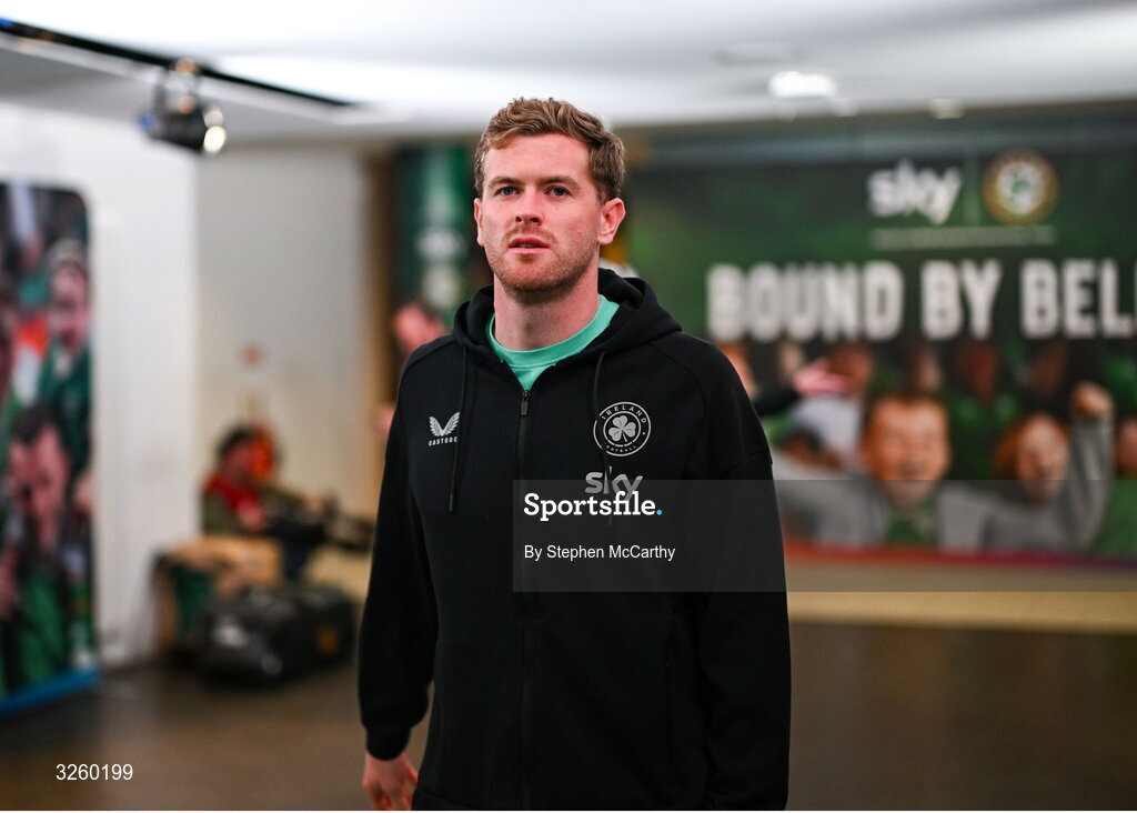 14 October 2025; Nathan Collins of Republic of Ireland before the FIFA World Cup 2026 Group F qualifying match between Republic of Ireland and Armenia at the Aviva Stadium in Dublin. Photo by Stephen McCarthy/Sportsfile