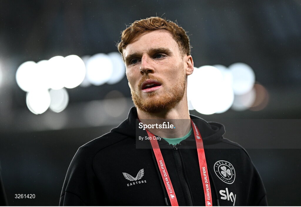 14 October 2025; Jake O'Brien of Republic of Ireland before the FIFA World Cup 2026 Group F qualifying match between Republic of Ireland and Armenia at the Aviva Stadium in Dublin. Photo by Seb Daly/Sportsfile