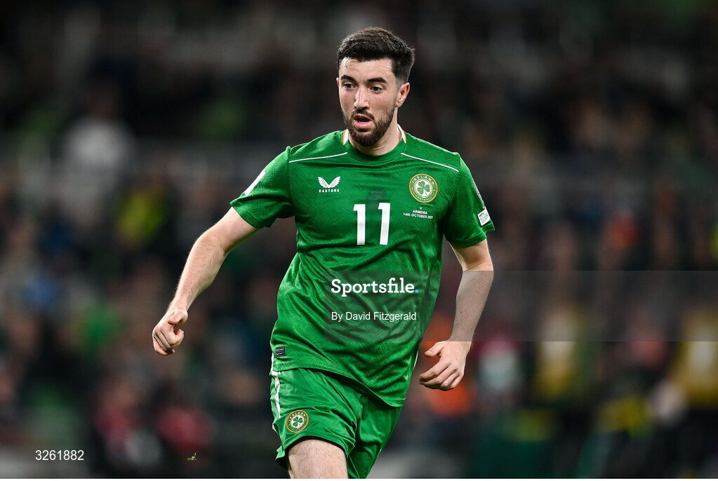 14 October 2025; Finn Azaz of Republic of Ireland during the FIFA World Cup 2026 Group F qualifying match between Republic of Ireland and Armenia at the Aviva Stadium in Dublin. Photo by David Fitzgerald/Sportsfile