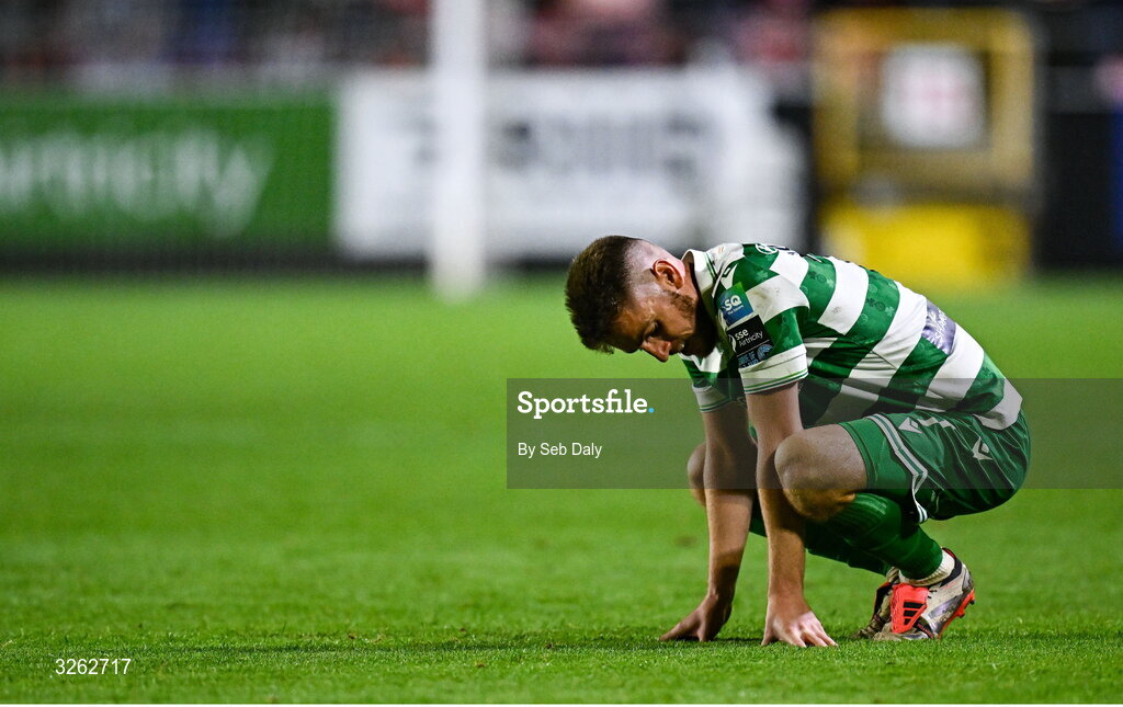 17 October 2025; Dylan Watts of Shamrock Rovers after his side's defeat in the SSE Airtricity Men's Premier Division match between St Patrick's Athletic and Shamrock Rovers at Richmond Park in Dublin. Photo by Seb Daly/Sportsfile