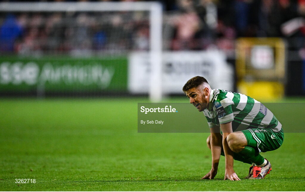 17 October 2025; Dylan Watts of Shamrock Rovers after his side's defeat in the SSE Airtricity Men's Premier Division match between St Patrick's Athletic and Shamrock Rovers at Richmond Park in Dublin. Photo by Seb Daly/Sportsfile