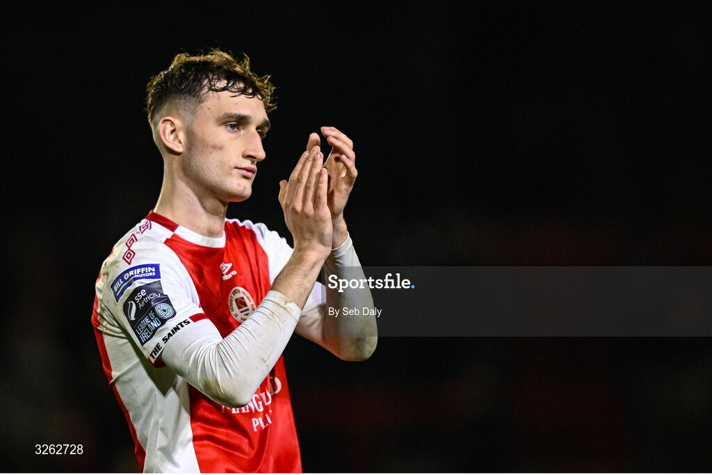 17 October 2025; Mason Melia of St Patrick's Athletic after the SSE Airtricity Men's Premier Division match between St Patrick's Athletic and Shamrock Rovers at Richmond Park in Dublin. Photo by Seb Daly/Sportsfile