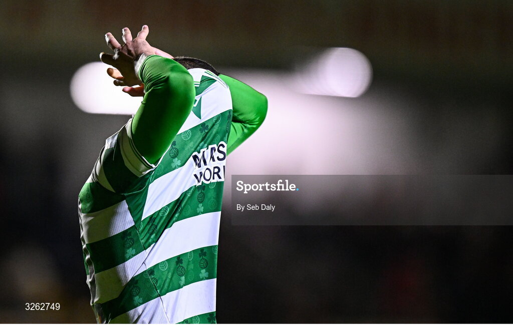 17 October 2025; Graham Burke of Shamrock Rovers reacts during the SSE Airtricity Men's Premier Division match between St Patrick's Athletic and Shamrock Rovers at Richmond Park in Dublin. Photo by Seb Daly/Sportsfile
