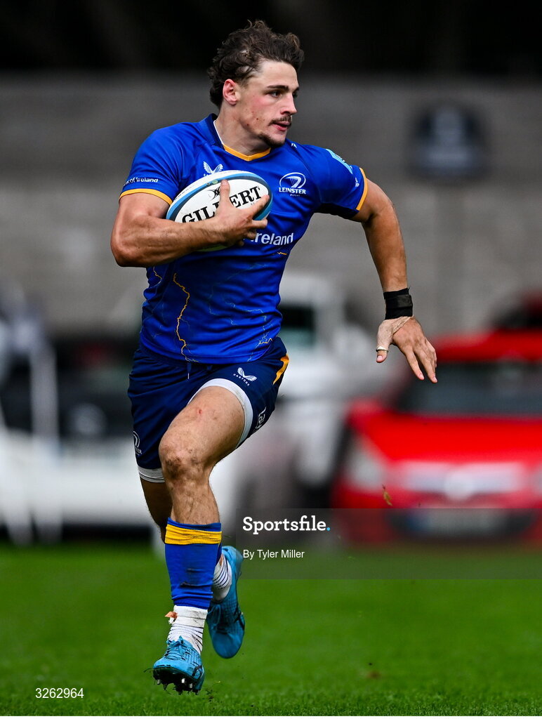 18 October 2025; Joshua Kenny of Leinster during the Interprovincial "A" Rugby Championship match between Leinster A and Munster A at Ollie Campbell Park in Dublin. Photo by Tyler Miller/Sportsfile