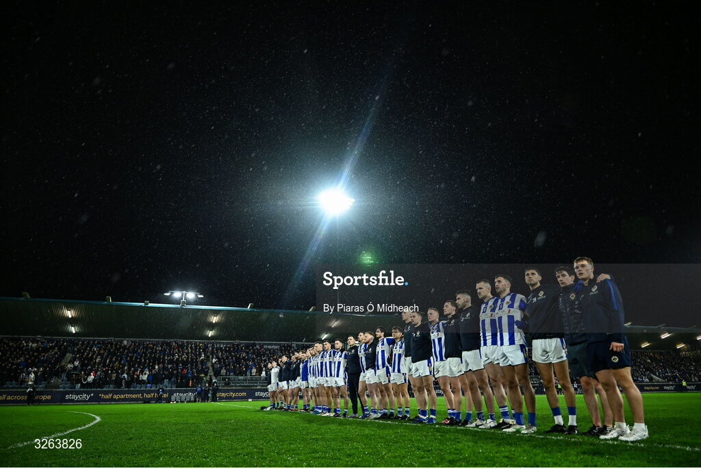18 October 2025; Ballyboden St Enda's players stand for a minute's silence for the late Philly Ryan, Tipperary senior football manager, who passed away today, before the Dublin County Senior Club Football Championship final match between Ballyboden St Enda's and Na Fianna at Parnell Park in Dublin. Photo by Piaras Ó Mídheach/Sportsfile