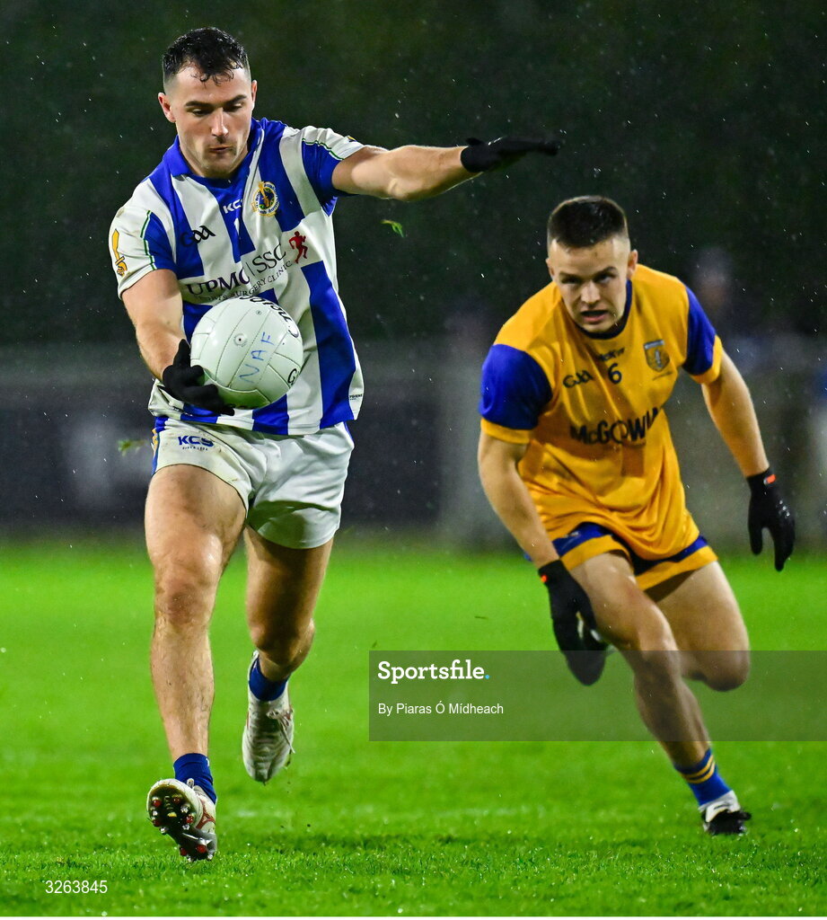 18 October 2025; Colm Basquel of Ballyboden St Enda's in action against Eoin Murchan of Na Fianna during the Dublin County Senior Club Football Championship final match between Ballyboden St Enda's and Na Fianna at Parnell Park in Dublin. Photo by Piaras Ó Mídheach/Sportsfile