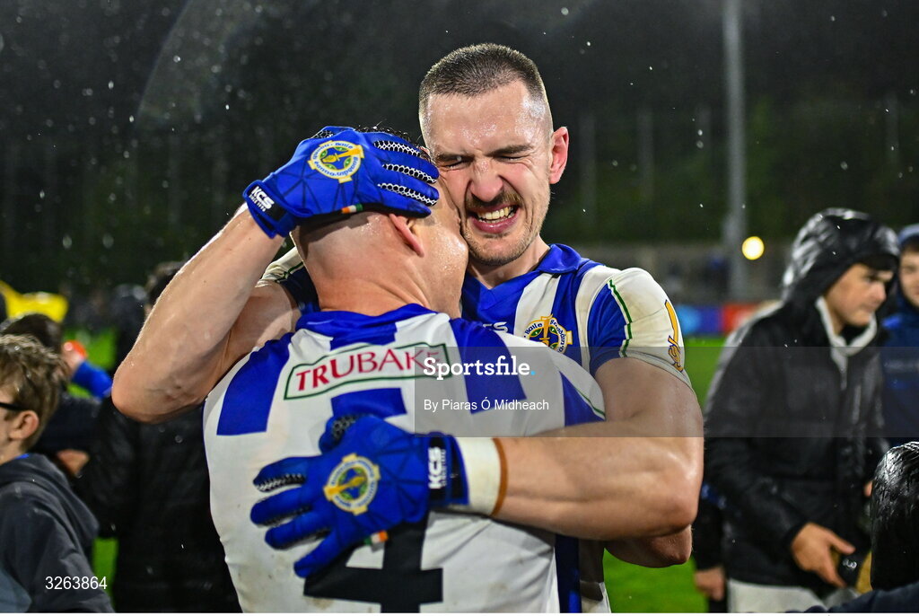 18 October 2025; Ballyboden St Enda's players Cein Darcy, behind, and Cathal Flaherty celebrate after their side's victory in the Dublin County Senior Club Football Championship final match between Ballyboden St Enda's and Na Fianna at Parnell Park in Dublin. Photo by Piaras Ó Mídheach/Sportsfile