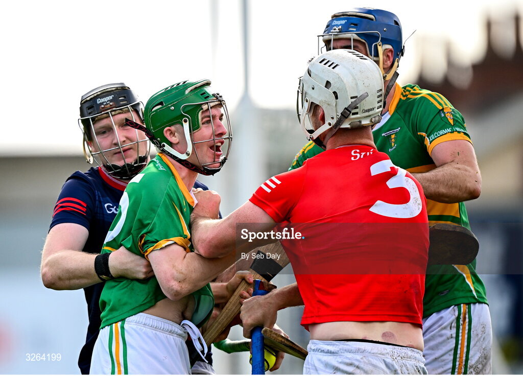 19 October 2025; Adam Screeney of Kilcormac-Killoughey tussles with Michael Cleary of Shinrone during the Offaly County Senior Club Hurling Championship final match between Kilcormac-Killoughey and Shinrone at Glenisk O'Connor Park in Tullamore, Offaly. Photo by Seb Daly/Sportsfile