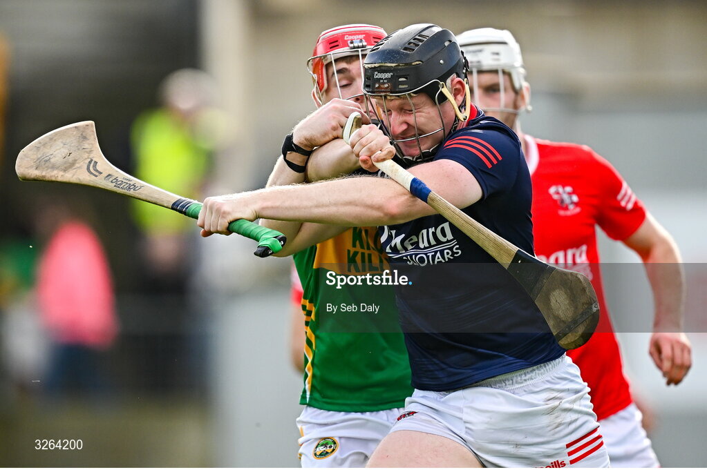 19 October 2025; Shinrone goalkeeper Eamonn Cleary in action against Alex Kavanagh of Kilcormac-Killoughey during the Offaly County Senior Club Hurling Championship final match between Kilcormac-Killoughey and Shinrone at Glenisk O'Connor Park in Tullamore, Offaly. Photo by Seb Daly/Sportsfile