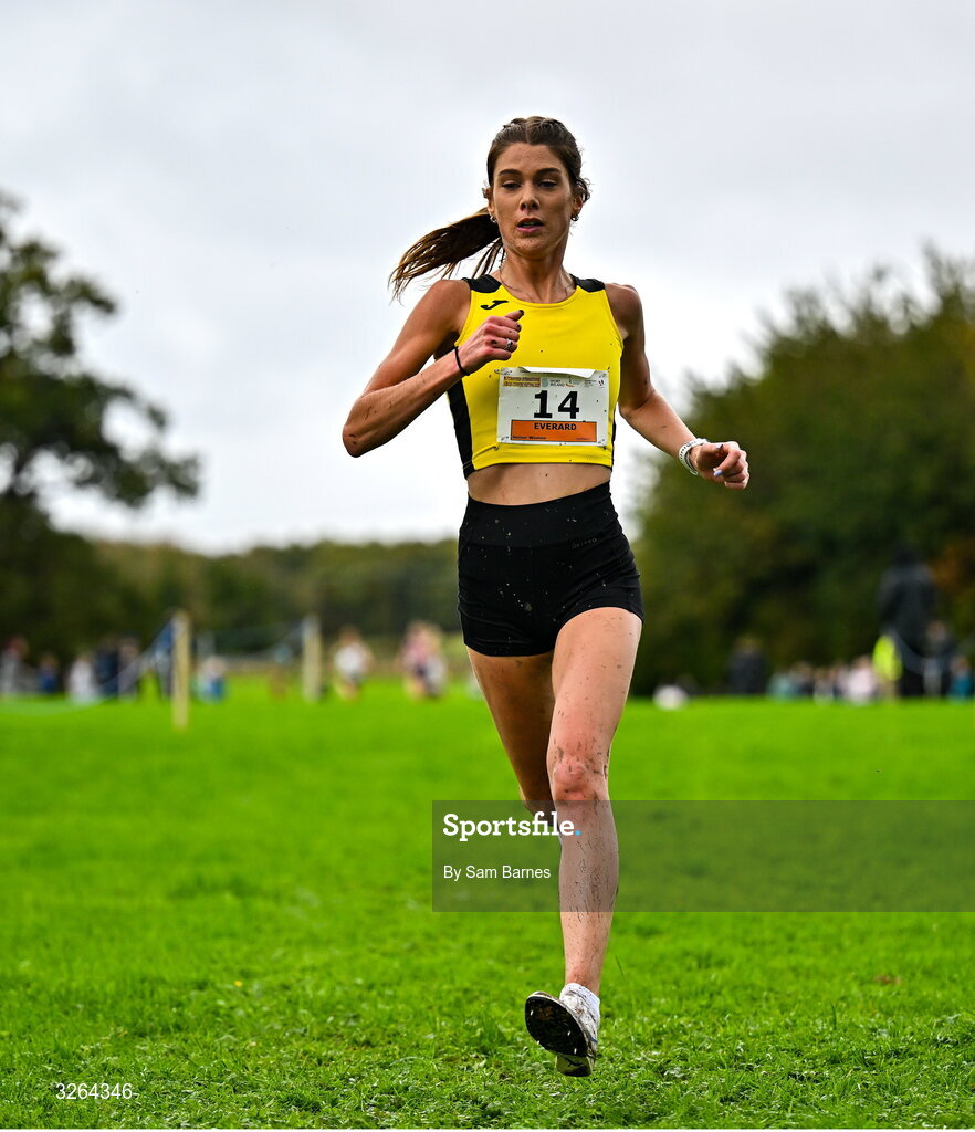 19 October 2025; Fiona Everard of Bandon AC, Cork, on her way to winning the senior women's 6000m during the National Autumn Cross County & Relays at the Sport Ireland National Cross Country Track in Abbotstown, Dublin. Photo by Sam Barnes/Sportsfile