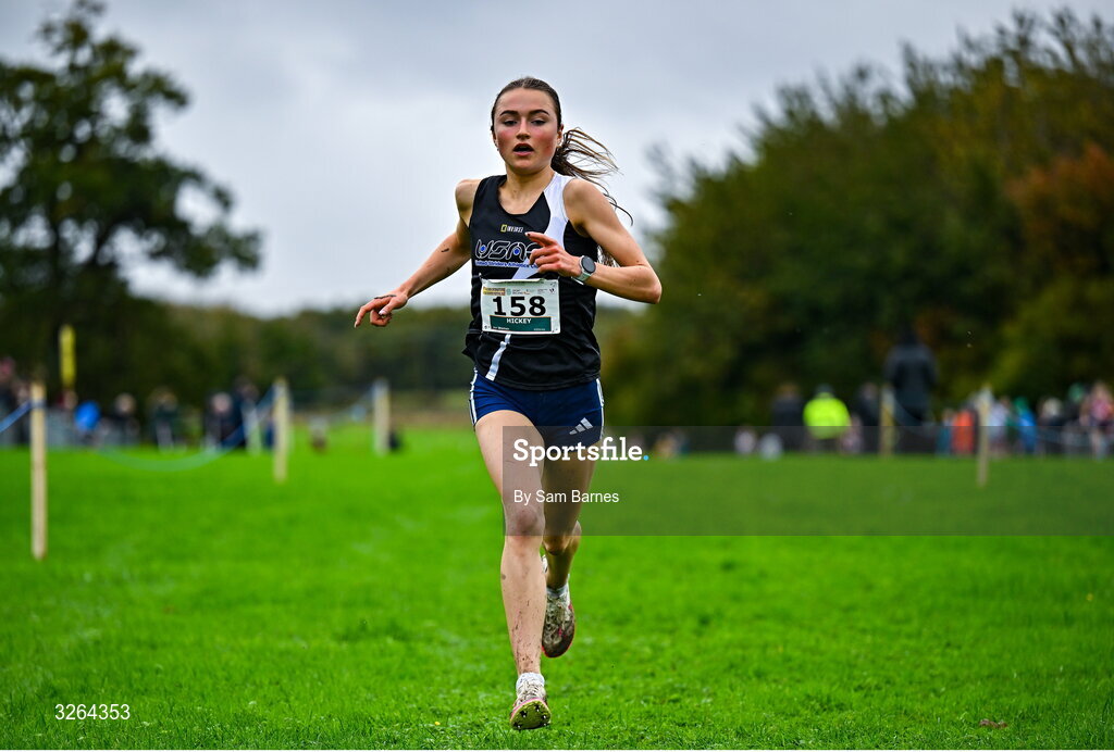 19 October 2025; Emma Hickey of United Striders AC, on her way to winning the junior women's 4500m during the National Autumn Cross County & Relays at the Sport Ireland National Cross Country Track in Abbotstown, Dublin. Photo by Sam Barnes/Sportsfile