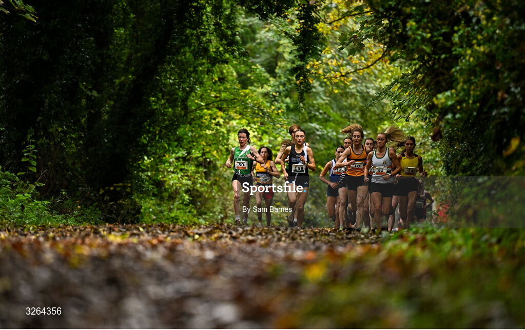 19 October 2025; A general view of the race leaders in the womens race during the National Autumn Cross County & Relays at the Sport Ireland National Cross Country Track in Abbotstown, Dublin. Photo by Sam Barnes/Sportsfile