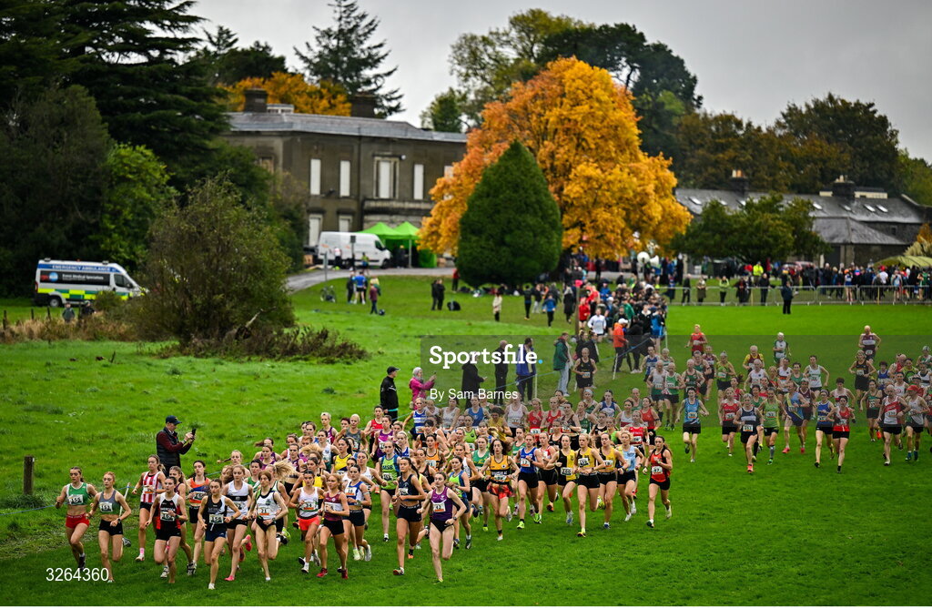 19 October 2025; A general view of the field of the women's races and the master men 65+ during the National Autumn Cross County & Relays at the Sport Ireland National Cross Country Track in Abbotstown, Dublin. Photo by Sam Barnes/Sportsfile