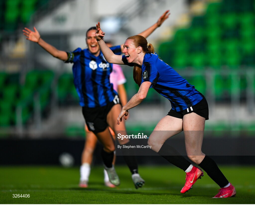 19 October 2025; Kelly Brady of Athlone Town celebrates after scoring her, and her side's, third goal during the 2025 Sports Direct Women's FAI Cup Final match between Athlone Town and Bohemians at Tallaght Stadium in Dublin. Photo by Stephen McCarthy/Sportsfile
