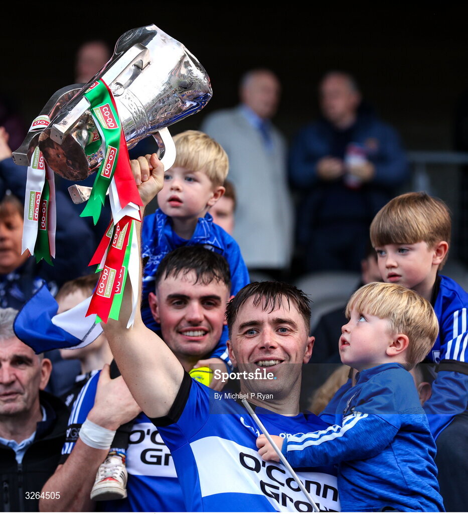 19 October 2025; Sarsfields captain Conor O'Sullivan lifts the Sean Óg Murphy cup after the Cork County Senior Club Hurling Championship final match between Sarsfields and Midleton at SuperValu Páirc Uí Chaoimh in Cork. Photo by Michael P Ryan/Sportsfile