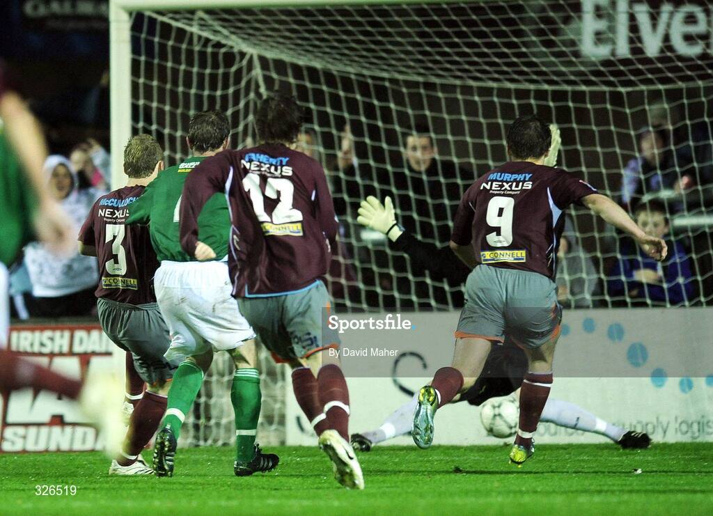 7 November 2008; Mark McCulloch, no.3, Galway United, shoots to score his side's first goal. eircom League Premier Division, Galway United v Finn Harps, Terryland Park, Galway. Picture credit: David Maher / SPORTSFILE