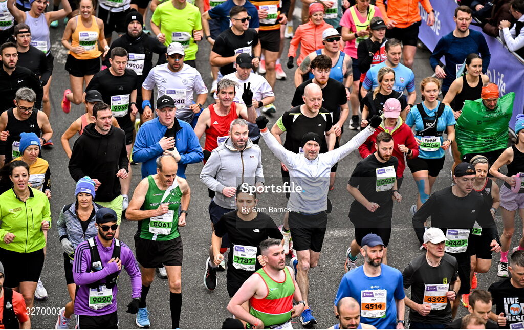 26 October 2025; Participants during the 2025 Irish Life Dublin Marathon. This marks the 44th edition of the race with thousands of participants from international athletes, club runners, wheelchair-assisted participants, charity runners, and first-time marathon participants taking on the 26.2-mile challenge. Photo by Sam Barnes/Sportsfile