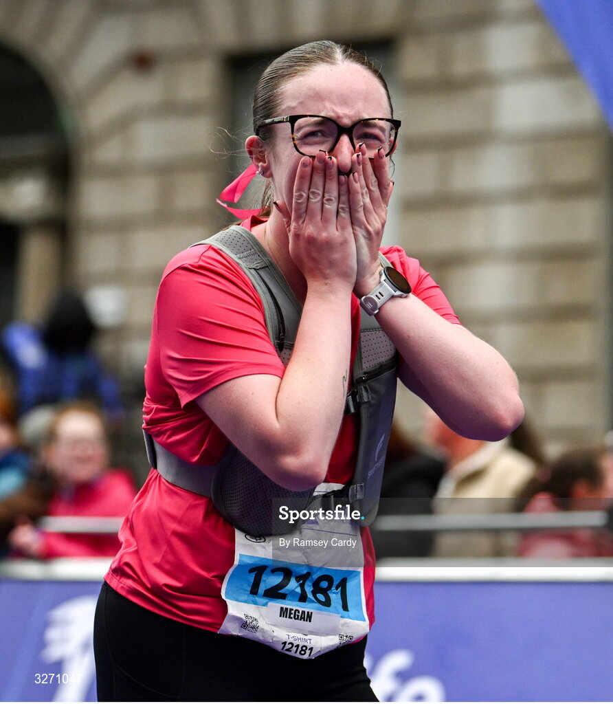 26 October 2025; Megan Roche during the 2025 Irish Life Dublin Marathon. This marks the 44th edition of the race with thousands of participants from international athletes, club runners, wheelchair-assisted participants, charity runners, and first-time marathon participants taking on the 26.2-mile challenge. Photo by Ramsey Cardy/Sportsfile