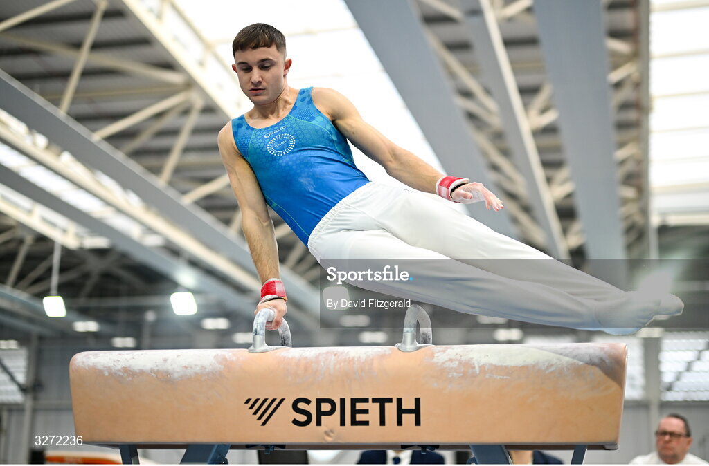 27 October 2025; David Martelli of Origin Gym competes on the pommel during the Gymnastics Ireland Next Gen Competition at the National Indoor Arena on the Sport Ireland Campus in Dublin. Photo by David Fitzgerald/Sportsfile