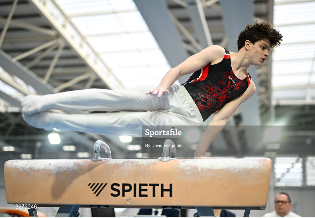 27 October 2025; Milo Wallace-Dunn of Salto GC competes on the pommel during the Gymnastics Ireland Next Gen Competition at the National Indoor Arena on the Sport Ireland Campus in Dublin. Photo by David Fitzgerald/Sportsfile
