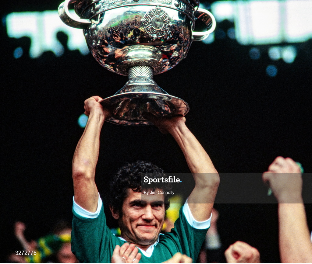 21 September 1980; Kerry captain Ger Power lifts the Sam Maguire cup after his side's victory in the All Ireland Football Final match between Kerry and Roscommon at Croke Park, Dublin. Photo by Connolly Collection/Sportsfile