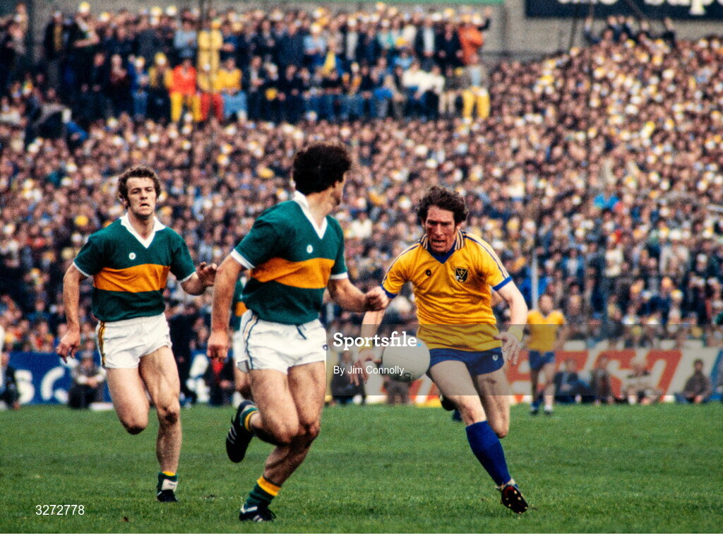 21 September 1980; Seamus Hayden of Roscommon in action against Jack O'Shea of Kerry during the All Ireland Football Final match between Kerry and Roscommon at Croke Park in Dublin. Photo by Connolly Collection/Sportsfile