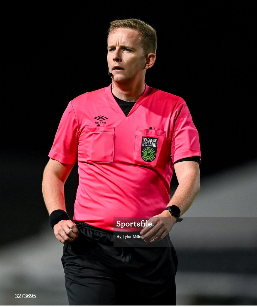 28 October 2025; Referee Daniel Murphy during the SSE Airtricity Men's First Division Play-Off semi-final second leg match between Bray Wanderers and UCD at Carlisle Grounds in Bray, Wicklow. Photo by Tyler Miller/Sportsfile