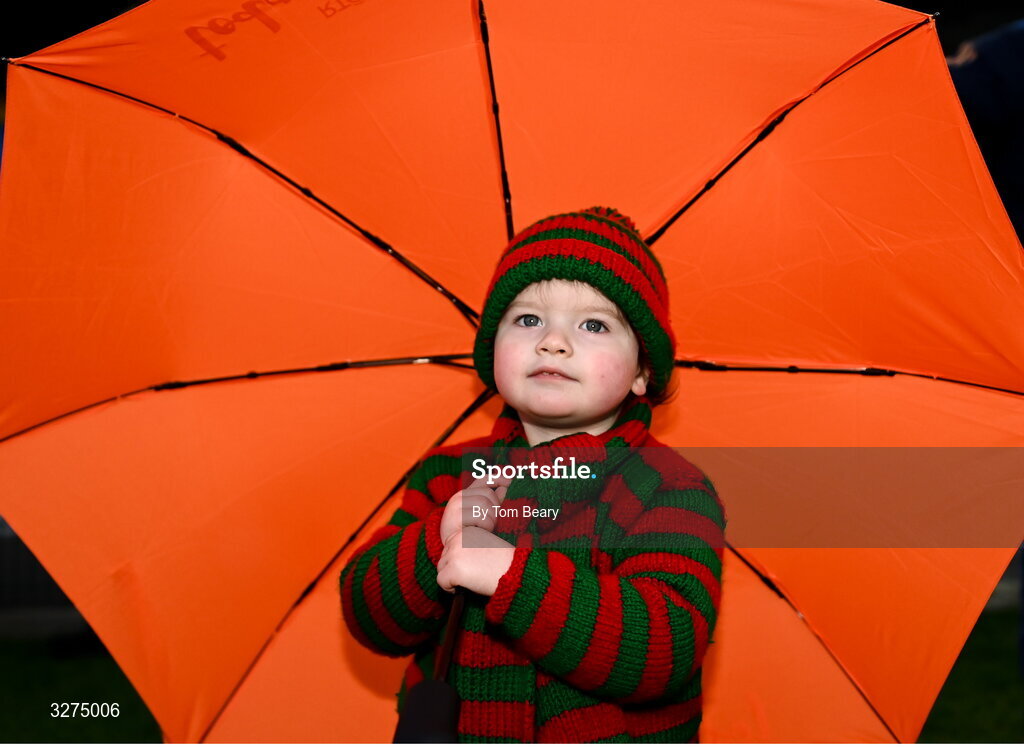 1 November 2025; St Brigid’s supporter Holly Cummins, aged 2, from Curraghboy after the Roscommon County Senior Club Football Championship Final Replay between St Brigid's and Pádraig Pearses at King & Moffatt Dr Hyde Park in Roscommon. Photo by Tom Beary/Sportsfile