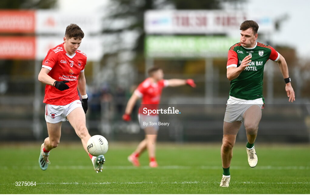 1 November 2025; Declan Kenny of Pádraig Pearses in action against Shane Cunnane of St Brigid's during the Roscommon County Senior Club Football Championship Final Replay between St Brigid's and Pádraig Pearses at King & Moffatt Dr Hyde Park in Roscommon. Photo by Tom Beary/Sportsfile