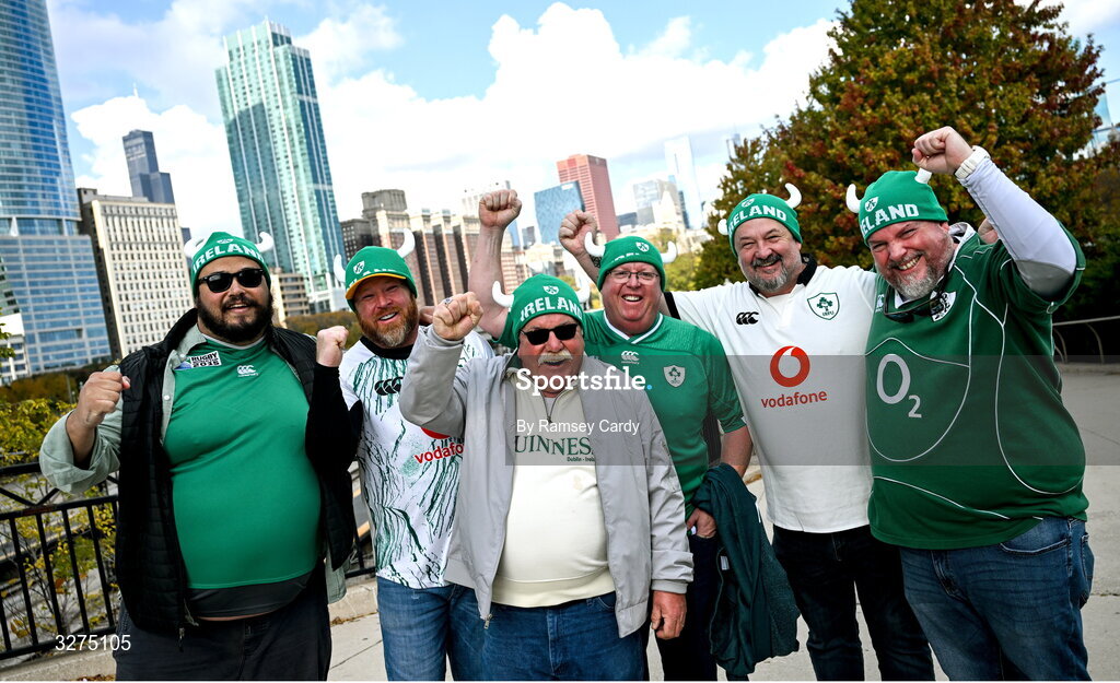 1 November 2025; Ireland supporters before the Gallagher Cup match between Ireland and New Zealand at Soldier Field in Chicago, USA. Photo by Ramsey Cardy/Sportsfile