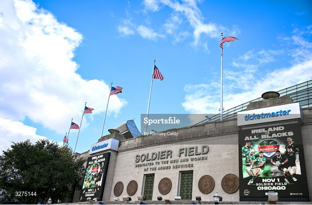 1 November 2025; A general view before the Gallagher Cup match between Ireland and New Zealand at Soldier Field in Chicago, USA. Photo by Ramsey Cardy/Sportsfile