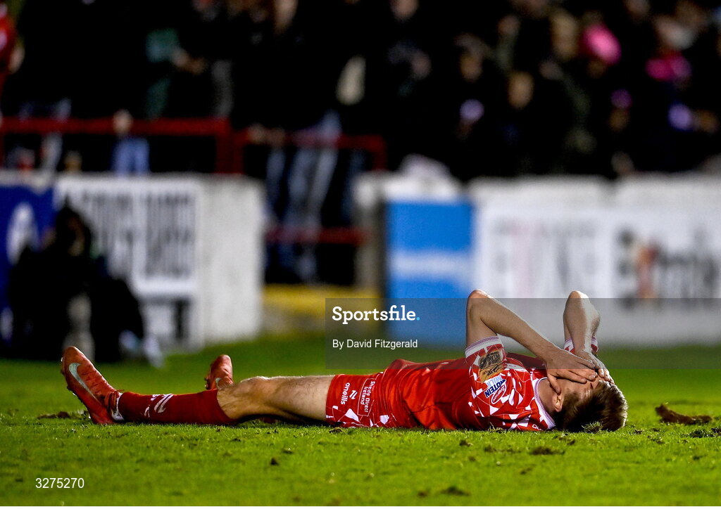 1 November 2025; Daniel Kelly of Shelbourne reacts after a missed opportunity during the SSE Airtricity Men's Premier Division match between Shelbourne and St Patrick's Athletic at Tolka Park in Dublin. Photo by David Fitzgerald/Sportsfile