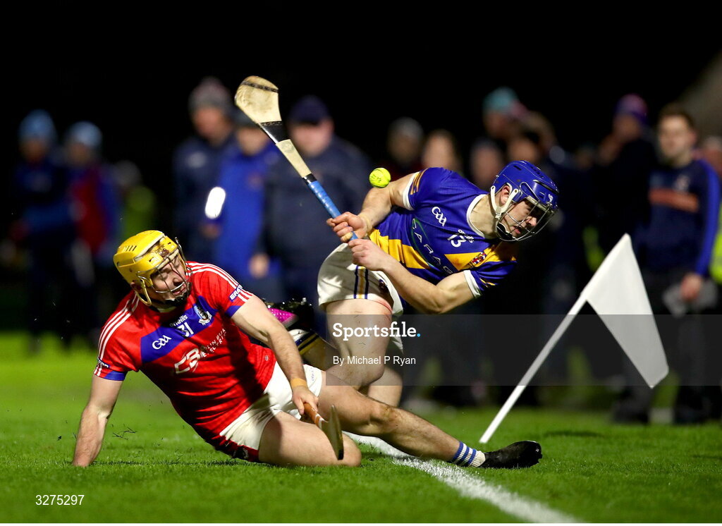 1 November 2025; Anthony Burns of Loughrea in action against Cian Mahony of St Thomas' during the Galway County Senior Club Hurling Championship final match between St Thomas' and Loughrea at Pearse Stadium in Galway. Photo by Michael P Ryan/Sportsfile