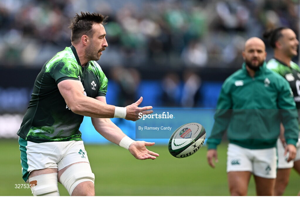 1 November 2025; Jack Conan of Ireland before the Gallagher Cup match between Ireland and New Zealand at Soldier Field in Chicago, USA. Photo by Ramsey Cardy/Sportsfile