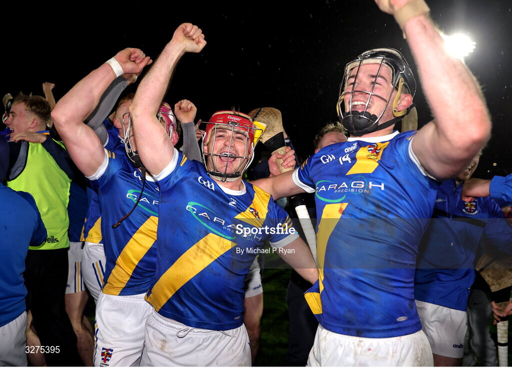 1 November 2025; Loughrea players celebrate after their side's victory in the Galway County Senior Club Hurling Championship final match between St Thomas' and Loughrea at Pearse Stadium in Galway. Photo by Michael P Ryan/Sportsfile