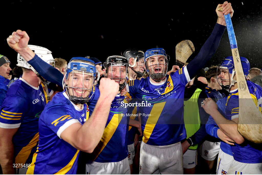 1 November 2025; Loughrea players celebrate after their side's victory in the Galway County Senior Club Hurling Championship final match between St Thomas' and Loughrea at Pearse Stadium in Galway. Photo by Michael P Ryan/Sportsfile