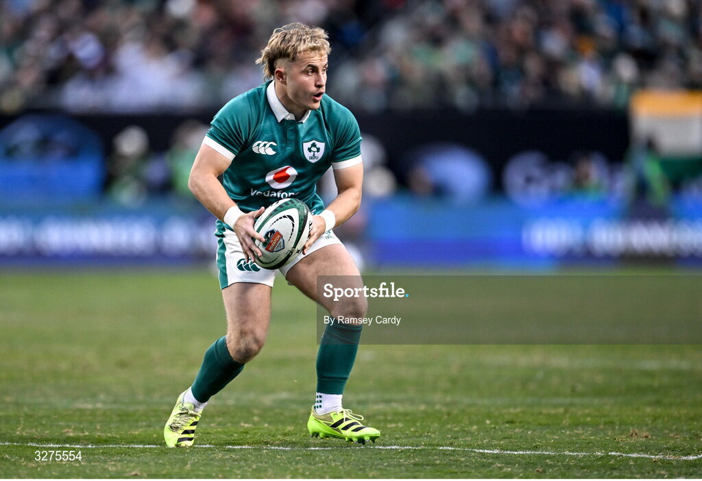 1 November 2025; Craig Casey of Ireland during the Gallagher Cup match between Ireland and New Zealand at Soldier Field in Chicago, USA. Photo by Ramsey Cardy/Sportsfile