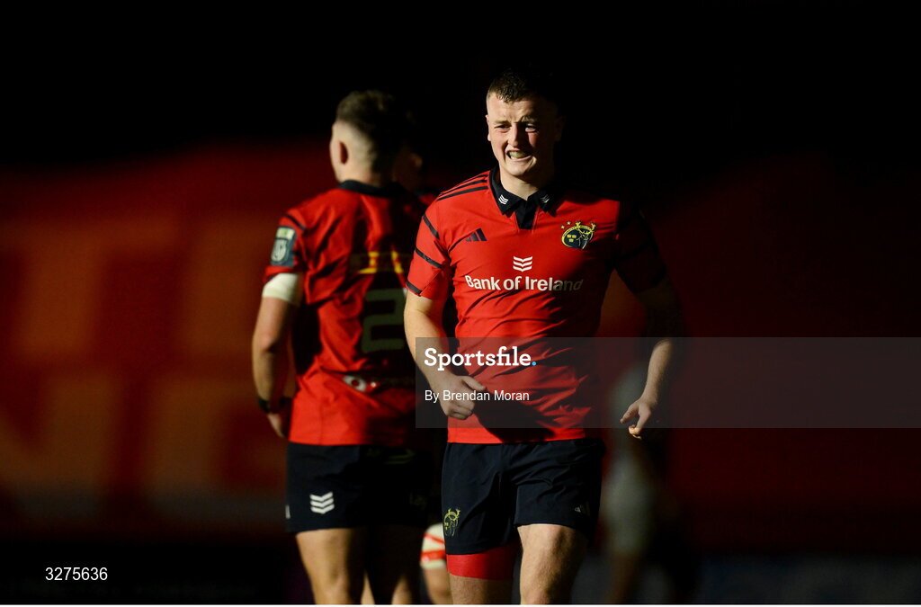 1 November 2025; Fionn Gibbons of Munster during the tour match between Munster and Argentina XV at Thomond Park in Limerick. Photo by Brendan Moran/Sportsfile