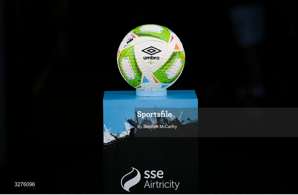 1 November 2025; A general view of the matchball on a plinth before the SSE Airtricity Men's Premier Division match between Shamrock Rovers and Sligo Rovers at Tallaght Stadium in Dublin. Photo by Stephen McCarthy/Sportsfile
