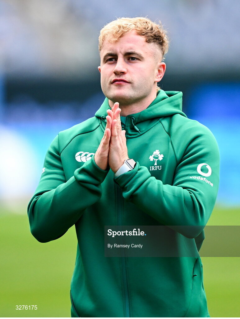 1 November 2025; Craig Casey of Ireland before the Gallagher Cup match between Ireland and New Zealand at Soldier Field in Chicago, USA. Photo by Ramsey Cardy/Sportsfile
